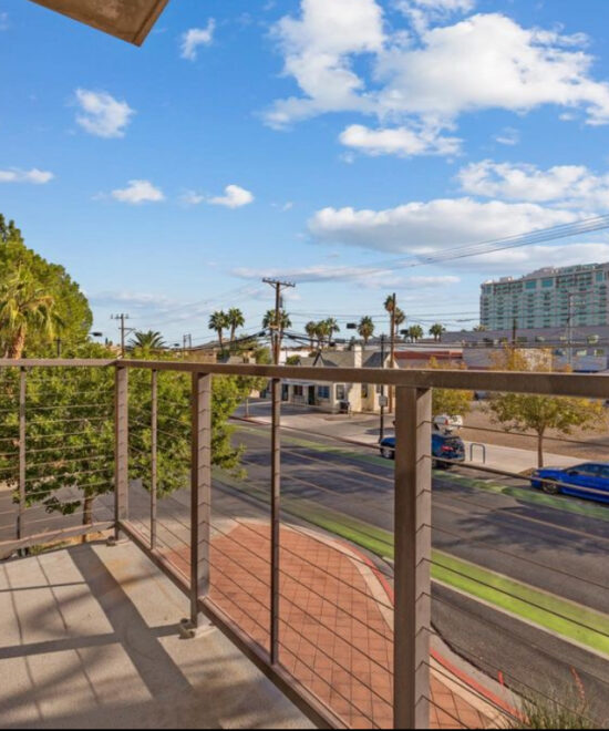 Impeccably renovated, decorated, and fully furnished 2-bed 2-bath (dual master setup) condo with floor to ceiling windows and over 1,300 +Sq.F on a south-facing corner location w/terrace overlooking the iconic Las Vegas Strip, Downtown LV, and The Arts District! Walk to Fremont Street within minutes! This spacious and open concept layout apartment includes ALL NEW living necessities from kitchen appliances and pots/pans, coffee bar with Keurig and drip combo machine (starter pods/creamers incl.), KING beds (both rooms), all new furniture and furnishings, and all bath and bed linens! Features newly tiled floors, concrete walls, beautiful kitchen with quartz counters, matching tile backsplash & stainless steel appliances. Dining area has a new maple wood Article table and seating for 6 and a beautiful Vegas wall mural for added style. The living room comes equipped with a 65″ ROKU TV w/ Sonos stereo surround sound and each bedroom has a smart TV as well. Primary bedroom has floor-to-ceiling windows allowing tons of natural light, huge walk-in closet & double vanities, and a dedicated WFH desk space with outlets. All rooms have full blackout roller curtains. Building Features Resort-style pool w/poolside cabanas, spa, fire pit, alfresco movie theatre, 10th-floor vino deck with more strip views, pet park, two-story fitness center, summer kitchens, & grilling areas, 24-hour security, onsite dry cleaning, vehicle charging stations, secure garage parking (2 spots per unit), business center, concierge & much more. Ground floor offers craft retail, downtown corner store, Greens & Proteins, and more to come! Close to the new Circa Hotel, the Fremont Street Experience, Courts, and North Premium Outlets and many great restaurants. Steps to the Arts District, Smith Center, Las Vegas Academy of Arts and a short walk to abundant nightlife options. Less than 10 minutes to the convention center main halls without having to touch any freeways. This area has a walk score of 86 and it shows!