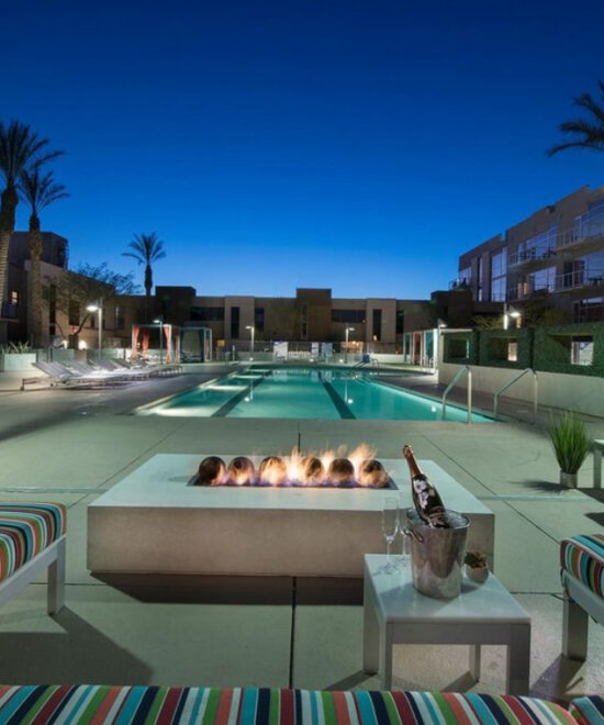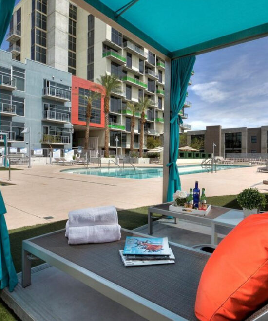 Enjoy exceptional amenities like the Vino Deck, poolside relaxation, and an outdoor movie theater, all just steps from the Arts District, Smith Center, and Las Vegas Academy of Arts.