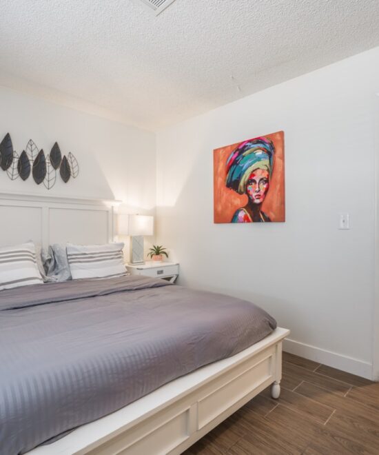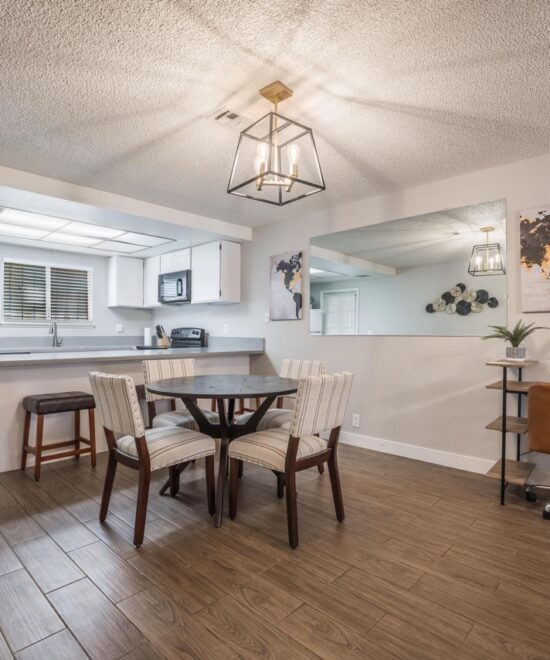 Beautiful condo fully furnished in prime location, recently remodeled, modern tile for the entire house, new lightings through out, quartz counter tops in kitchen and bathrooms, pictures just don’t do justice, have to see to appreciate, all new sinks and faucets too. Both rooms have queen bed, stocked with 2 sets of linen each and abundant towels, iron w/ board in house with washer and dryer. 55″ TV with free Netflix and Hulu, office desk and chair if you need to do some work. Conveniently located but safe and quiet neighborhood, less than 2 miles to freeway, Las Vegas strip, Fashion Show Mall, walking to Chinatown with hundreds of restaurants and shops, including grocery stores. Only minutes to airport, several major hospitals nearby.