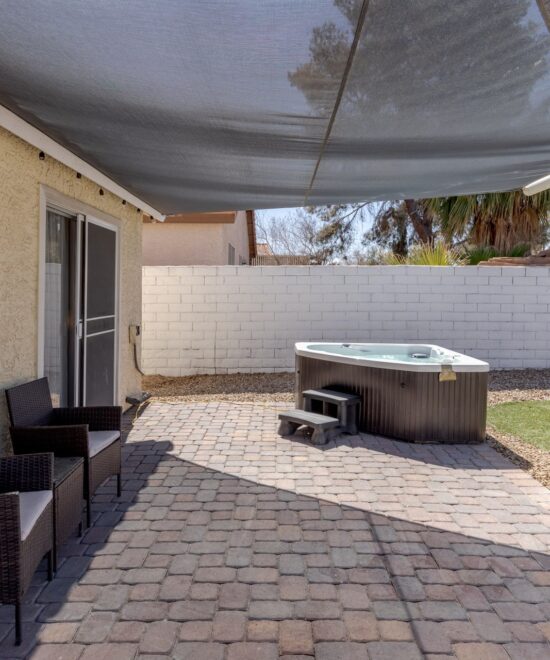 Experience the perfect blend of comfort and style in this newly decorated, modern, and airy furnished home in the highly sought-after Green Valley area of Henderson. This beautiful single-story features 3 spacious bedrooms, an open floor plan, and vaulted ceilings in the living room. Newly renovated and furnished, it creates a modern and airy feel. The backyard is beautifully landscaped with a hot tub and a swinging chair, perfect for relaxing and entertaining. Conveniently located with easy access to the 215, the airport, and the Las Vegas Strip, this home offers modern comfort in a prime location. This is a true gem.