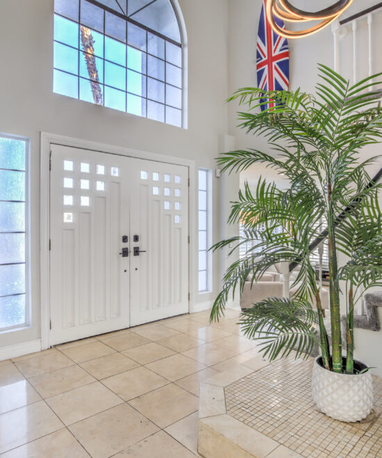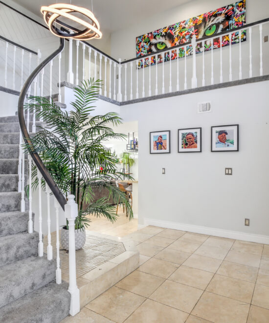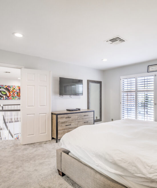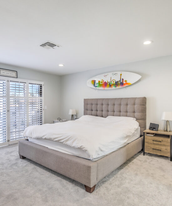 Highly upgraded & newly renovated, home on an over-sized corner lot. Conveniently located in the highly-desired community of The Lakes, minutes from Downtown Summerlin’s great shopping & restaurants, Las Vegas Ballpark, and Red Rock Canyon. Stunning resort-style back yard features a gorgeous pool & spa, covered patio with dining & living areas. Open floor plan inside features travertine floors, wet bar, stainless steel appliances, and breakfast bar. Upstairs features spacious en-suite primary bedroom with double-doors, balcony overlooking front yard, spacious his-and-hers walk-in closets. Office overlooks the backyard and pool, and has a dramatic, over-sized barn door entry. One bedroom has a Murphy bed. Both bathrooms upstairs have been completely remodeled with modern, high-end finishes and plantation shutters; Master bathroom has a beautiful stand-alone tub. Rented Unfurnished.
